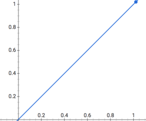 ”ほとんど確実に成長しない”というのを"努力をしても成長しない確率が\(1\)"と定義することにしましょう。つまり、"微分係数が0である確率が\(1\)"ということです。具体例は次の図です。
